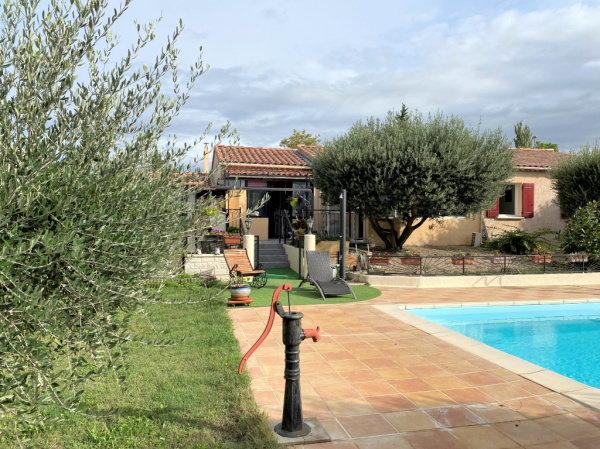 A l extérieure, vous disposerez au Sud d'une grande terrasse, d'une piscine de 4,5 X 2,5 m (filatration Desjoyaux), d'une Pergola, d'un espace pétanque et de la possibilité d'avoir un espace potager (partie Nord).